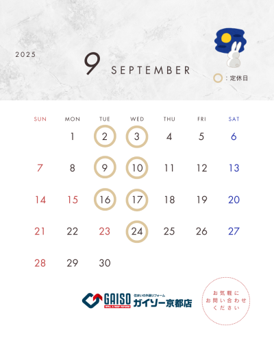 > 9月営業日のお知らせ
